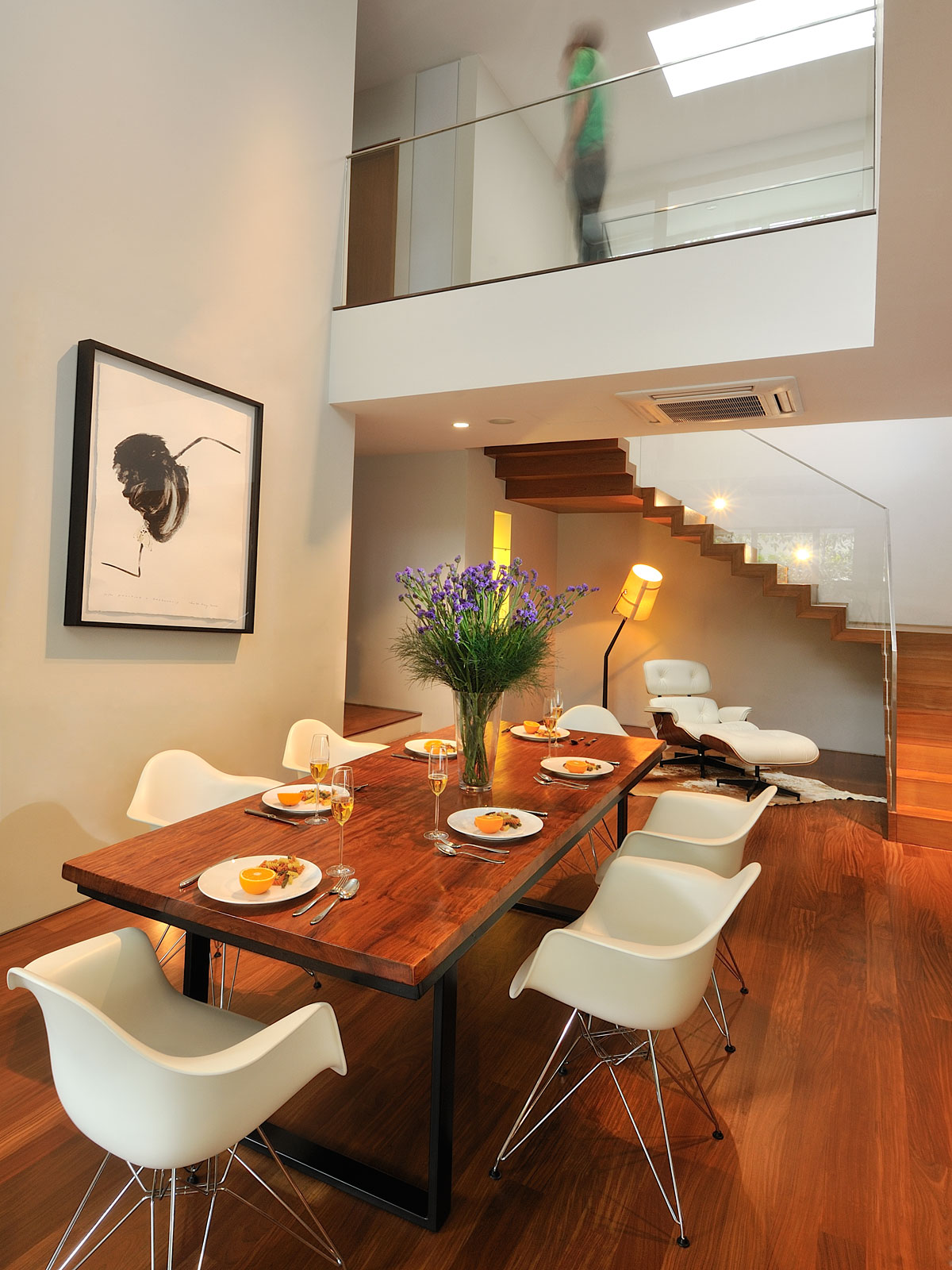 Existing stairs was relocated to the side and a void was introduced above the dining so as to allow interaction between the different spaces. The master was relocated to the front with a balcony and a luxurious walk-in closet with lots of spaces.