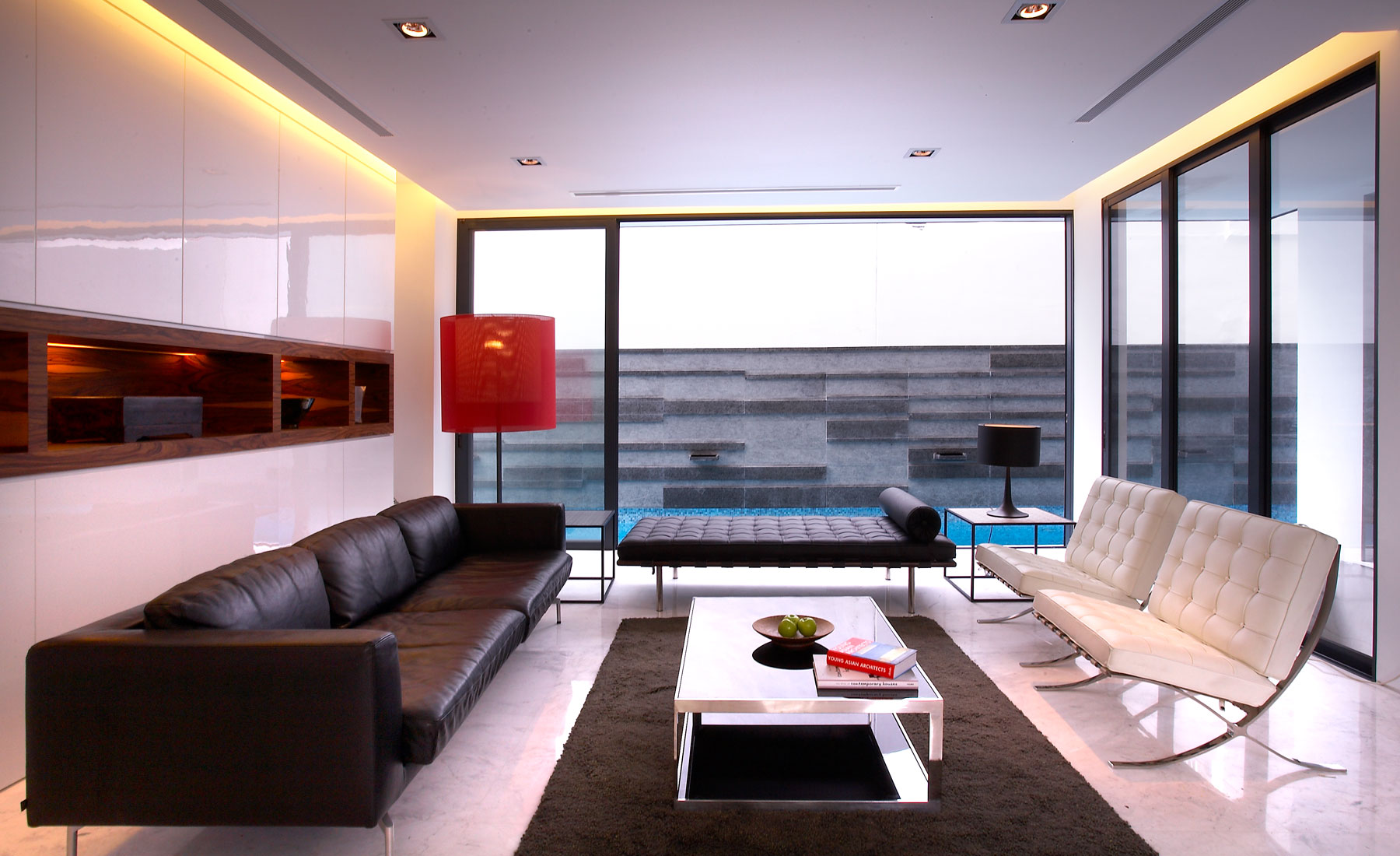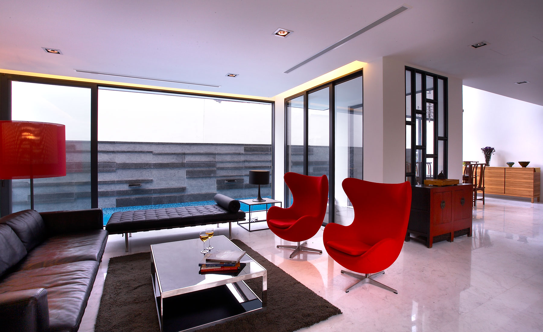 A light-filled open-plan home characterised by double-height areas and a seamless flow of space. Cooling breezes flow throughout the home as a result of its efficient new layout, conceptualised after an intensive on-site study of the weather conditions at the house. A pool nestled unusually by the side of the property was placed "to induce a cooling draft to occur". This flows into the living room and dining area flanking it, then into the bedrooms upstairs.