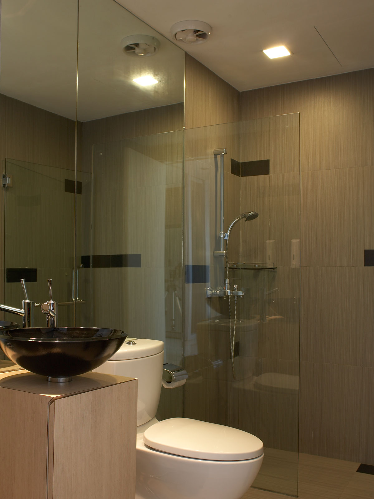 "The home owner is a koi fish enthusiat, so this was our way of extending the line of sight from the living room all the way into the pond, which is set just in front of the house"